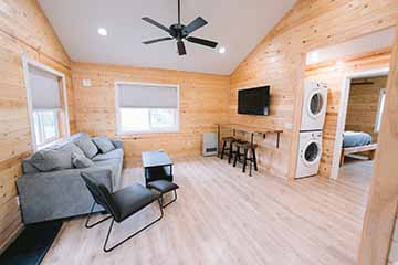 • Choose from cozy one-room cabins or spacious two-bedroom cabins, all family-friendly, with some cabins accommodating dogs as well.